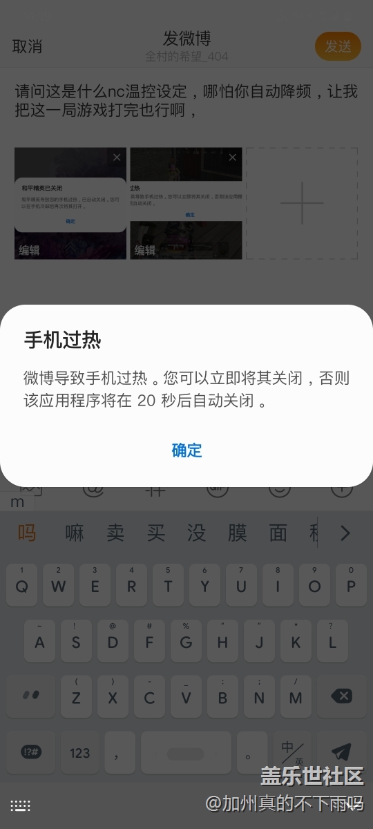 游戏温度导致手机过热,系统20秒后强制关闭 图片