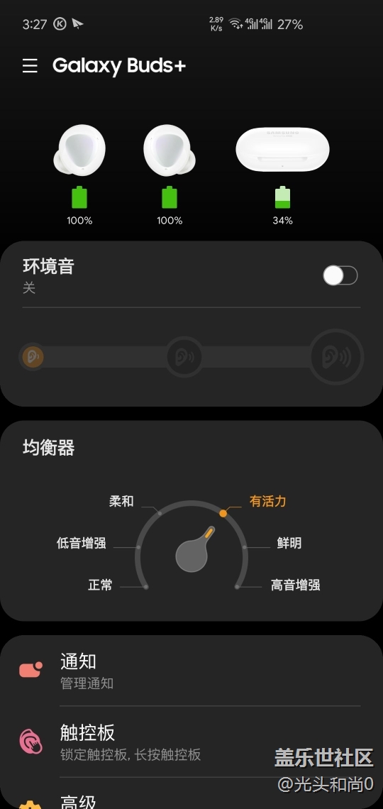 软件方面:安装Galaxy Wearable,开盖自动连接。这一代终于增加了花里胡哨的动画,舒服了。
