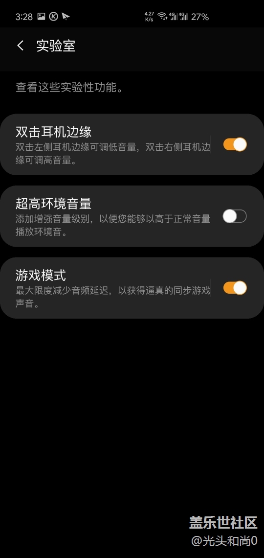 另外在实验室中新增了三个功能,其中双击耳机边缘调整音量比较实用,终于不用长按了。