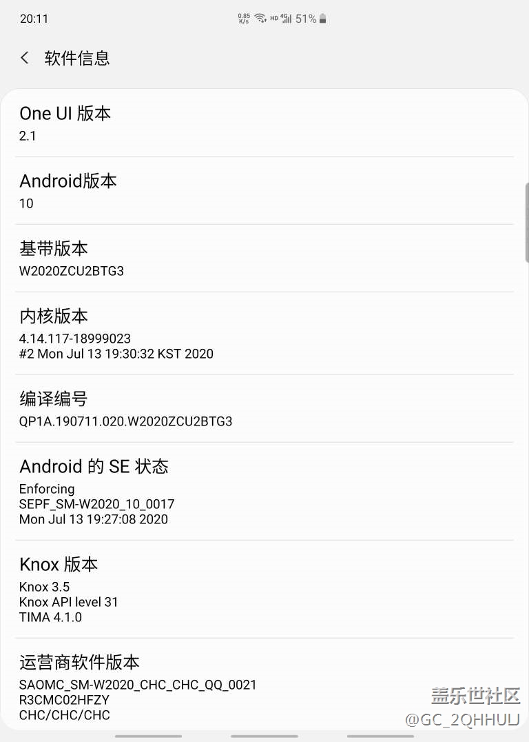 帖子名称: W2020终于更新了,安卓10,one ui2.1